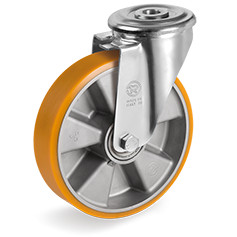 PU bevonatos kerék/K/80/65-ÖS/ALU/05/Hátfuratos kivitelű/Beépítési mag = 107 mm / Teherbírás = 200 kg