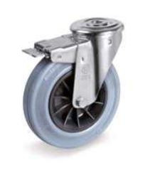 Kerék / Átmérő = 80 mm / Siklócsapágyas / Hátfuratos, fékes kivitelű / Beépítési mag = 107 mm / Teherbírás = 65 kg