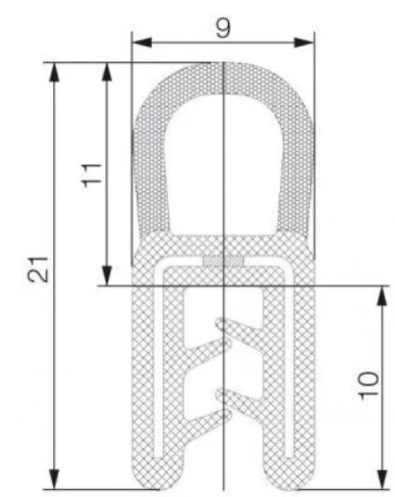 EPDM kombinált profil fémbetéttel/Fekete/Befogási tartomány = 1-2,5 mm / Fekete / 70 ± 5 ShA / 0,55 g/cm3