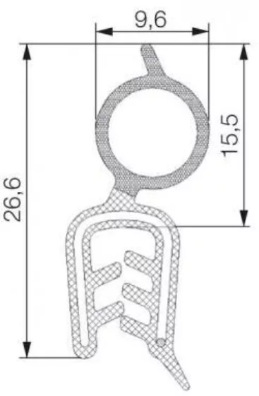 EPDM kombinált profil fémbetéttel/Fekete/Befogási tartomány = 1-2 mm / Fekete / 70 ± 5 ShA / 0,55 g/cm3