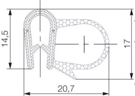EPDM kombinált profil fémbetéttel/Fekete/Befogási tartomány = 1-3,5 mm / Fekete / 70 ± 5 ShA / 0,55 g/cm3