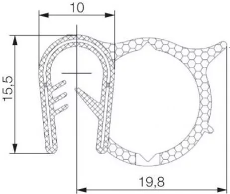 EPDM kombinált profil fémbetéttel/Fekete/Befogási tartomány = 1,5-3 mm / Fekete / 70 ± 5 ShA / 0,55 g/cm3