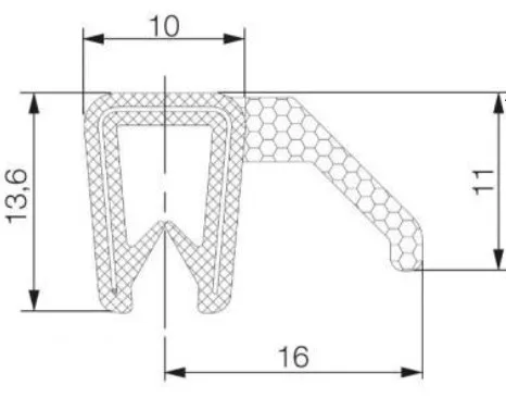EPDM kombinált profil fémbetéttel/Fekete/Befogási tartomány = 1-2 mm / Fekete / 70 ± 5 ShA / 0,55 g/cm3