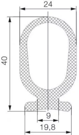 EPDM omega profil/Fekete/Fekete / 60 ± 5 ShA / 1,3 g/cm3