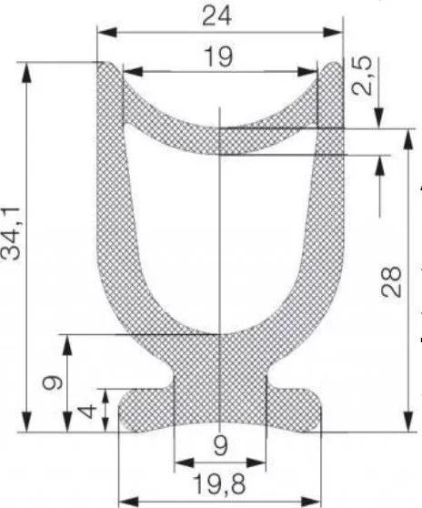 EPDM omega profil/Fekete/Fekete / 60 ± 5 ShA / 1,3 g/cm3
