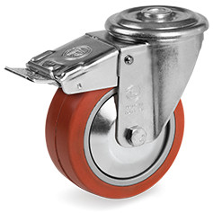 Kerék / Átmérő = 100 mm / Golyóscsapágyas / Hátfuratos, fékes kivitelű / Beépítési mag = 128 mm / Teherbírás = 80/40 kg