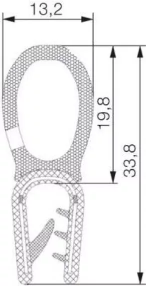 PVC kombinált profil fémbetéttel/Fekete/Befogási tartomány = 4-6 mm / Fekete / 78 ± 5 ShA / 0,55 g/cm3